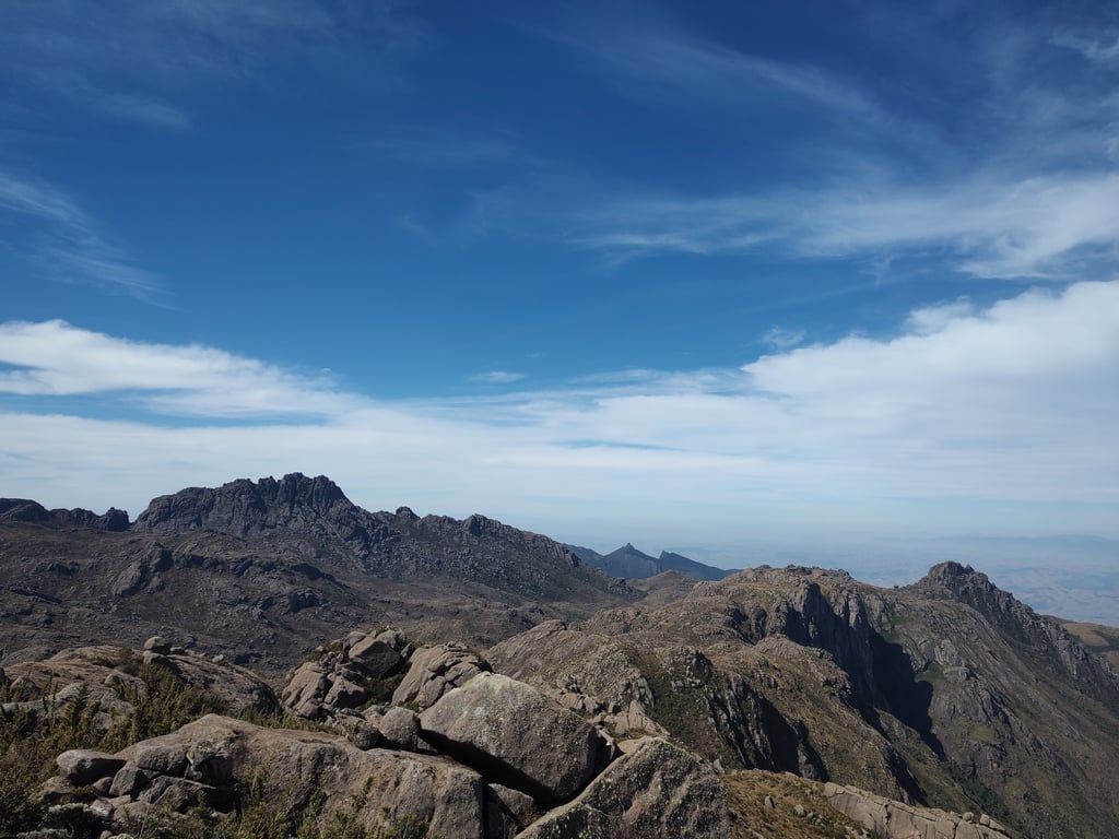 No primeiro dia de caminhada, faremos o circuito Morro do Couto x Base do Pico Prateleira, com cerca de 8,5 km, duração estimada de 6 a 7 horas e altitudes entre 2.350 m e 2.680 m. É um percurso cheio de personalidade, com campos rochosos, vegetação de altitude, formações impressionantes e vistas panorâmicas da Serra da Mantiqueira. Entre os destaques estão a famosa formação chamada “espinha de dragão”, a vista lateral do Pico das Prateleiras e a chance de observar aves de altitude em um ambiente muito único.