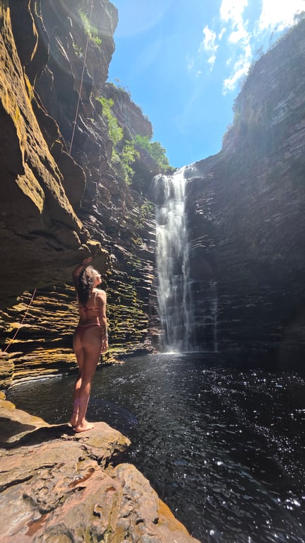 Serão 12km ida e volta para chegar na maior cachoeira do Brasil, a trilha começa com 2km de subida íngreme, do alto da montanha seguimos por mais 4km até o alto da sua imponente queda de 380m de altura. Vamos contemplar a cachoeira de 2 ângulos diferentes, em mirantes distintos. O caminho é incrível, mas bem exposto ao sol, então não esqueçam de levar o boné ou chapéu, protetor solar e muita água para hidratar. Voltamos pelo mesmo caminho até o místico Vale do Capão.